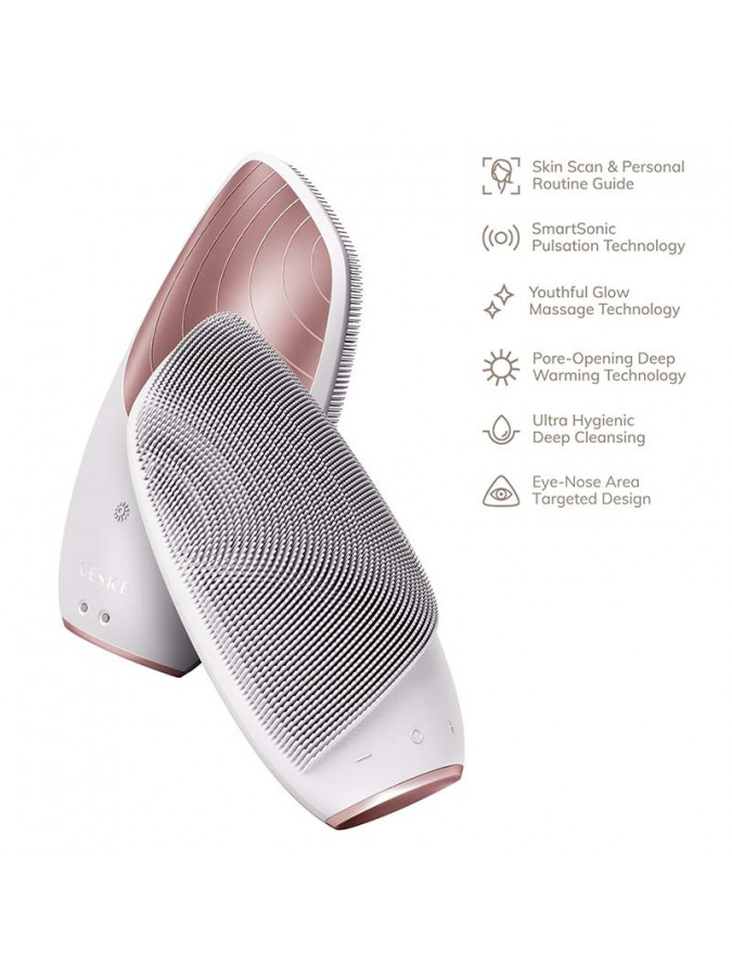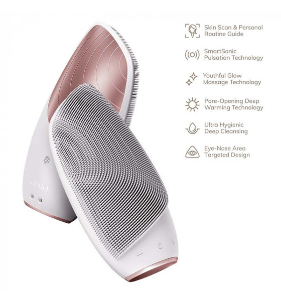 دليل Skin Scan & Personal Routine Guide المدعوم بتكنولوجيا الذكاء الاصطناعي المتطورة لضمان حصولك على أقصى استفادة من جهازك - تقنية SmartSonic Pulsation Technology التي تخلصك من الأوساخ والبقايا السائبة - تقنية Ultra Hygienic Deep Cleansing التي تضمن بشرة متألقة وخالية من الشوائب - تقنية Youthful Glow Massage Technology - معجزة على 3 مستويات ترفع وتشد وتنسق - تقنية Pore-Opening Deep Warming Technology التي تعمل على فتح مسام بشرتك وتهيئها لروتين العناية بالبشرة - Flexible Eye-Nose Area Targeted Design لتنظيف دقيق وتدليك المناطق التي يصعب الوصول إليها