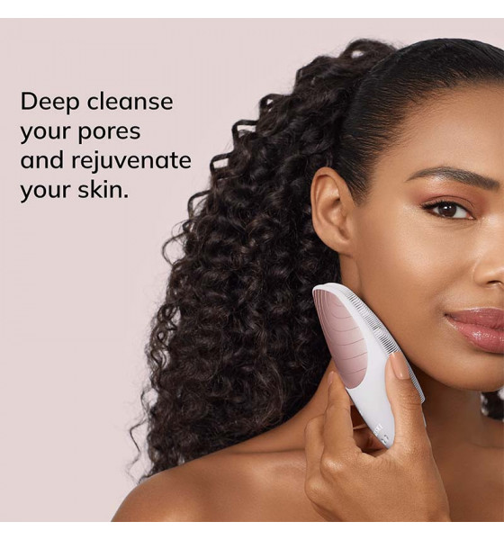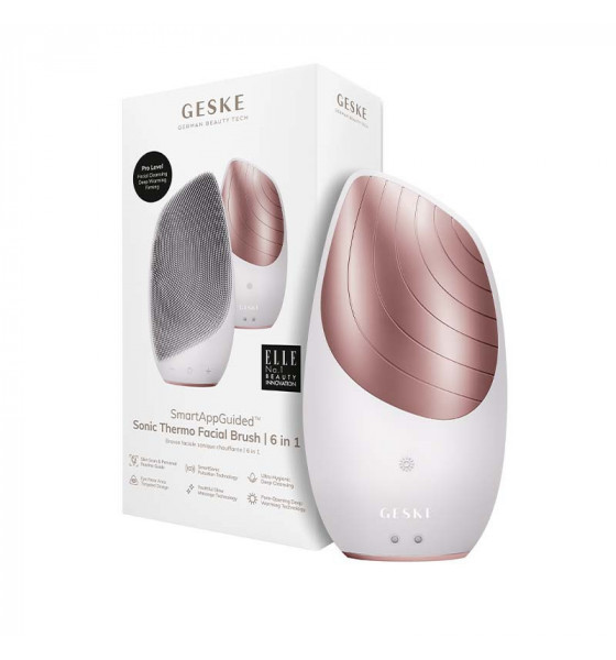 هل تشعرين بالقلق حيال موعدك القادم مع طبيب الأمراض الجلدية؟ أو ربما تشعرين بالقلق حيال تكلفة زيارة المنتجع الصحي المطولة التي قد تضيف عبئًا على ميزانيتك؟ لا داعي لقول المزيد - جهاز SmartAppGuided ™ Sonic Thermo Facial Brush | 6 في 1 هو الحل.