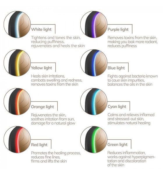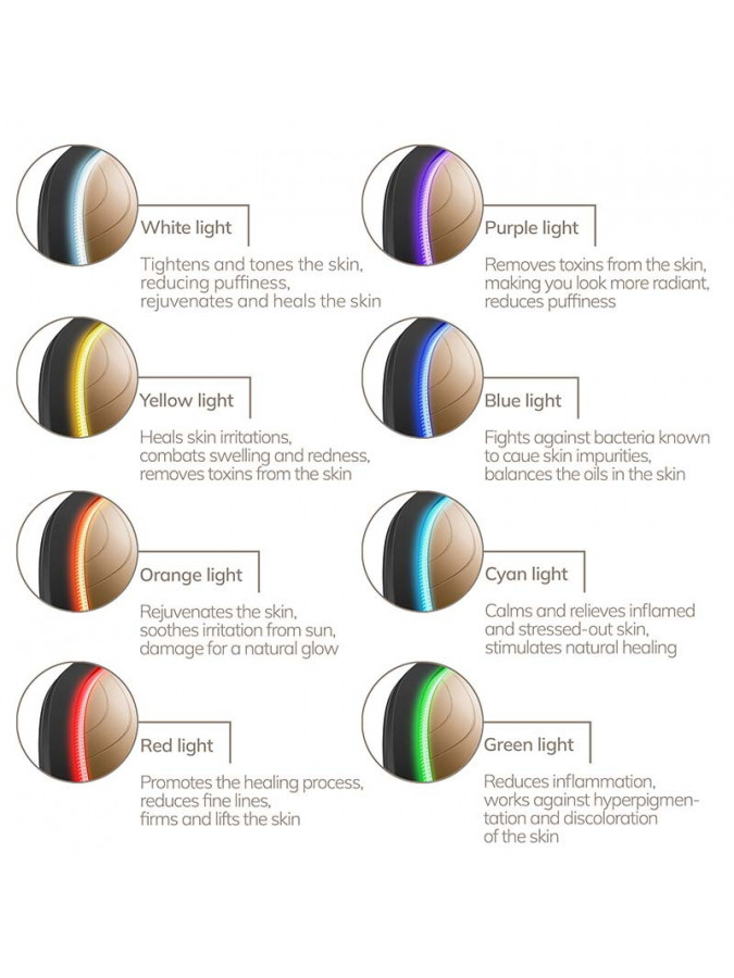 وهل ذكرنا؟ يتميز قناع Sonic Warm & Cool Mask | 9 في 1 بمجموعة كاملة من مصابيح LED، حيث يفيد كل لون LED بشرتك بطريقة خاصة. عالج/ي بشرتك بلون مختلف كل يوم!