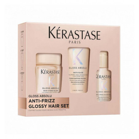 **Gloss & Anti-Frizz Discovery Trio – Gloss Absolu**The Gloss Absolu Discovery Trio features Bain Hydra-Glaze Shampoo, Fondant Insta Glaze Conditioner, and Spray Anti-Frizz Glaze Milk to deliver healthy, radiant shine.For dream-like hair: airy lightness, exceptional smoothness, and ultra-high shine — without frizz.The Gloss Absolu trio is the perfect routine for anyone seeking long-lasting, healthy shine. Expertly formulated with Hyaluronic Acid, Glycolic Acid, and Wild Rose Extract sourced from the Auvergne region in France, it transforms hair into a glossy, smooth, and luminous dream.**Results:*** Up to 4 days of ultra shine * Up to 4 days of hydration * Up to 4 days of smoothness and frizz control**Vegan formula**