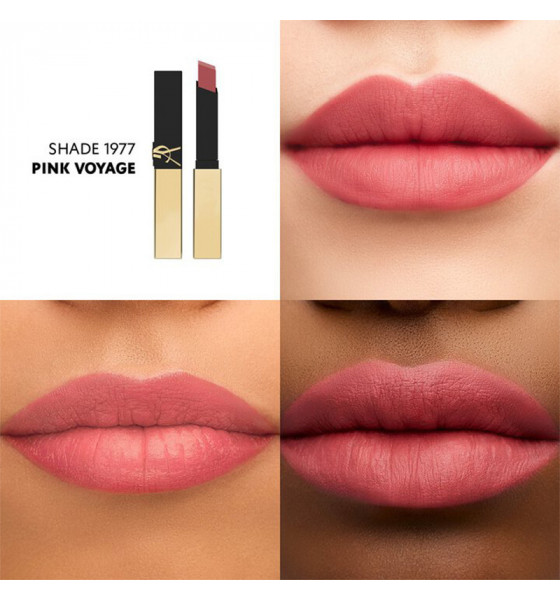 Experience couture at your fingertips with the new YSL The Slim couture matte lipstick. It's iconic square sculptual bullet glides on, delivering 10H of impeccable* color and 10H of hydrating feeling*. Enriched with 67% care base formula and infused with skin ceramides, rosehip and jojoba oils, dress your lips in a tailored second skin comfort.