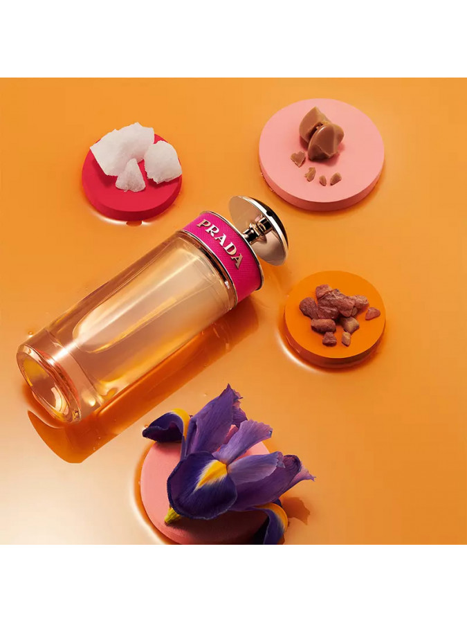 Prada Candy Eau de Parfum is a playful and sophisticated fragrance, an oriental gourmand scent. An unexpected olfactory balance combining a joyful caramel accord with an overdose of noble and warm benzoin resin, bringing unprecedent sophistication and elegance. A creative fusion wrapped in a silky and eveloping cloud of white musks.