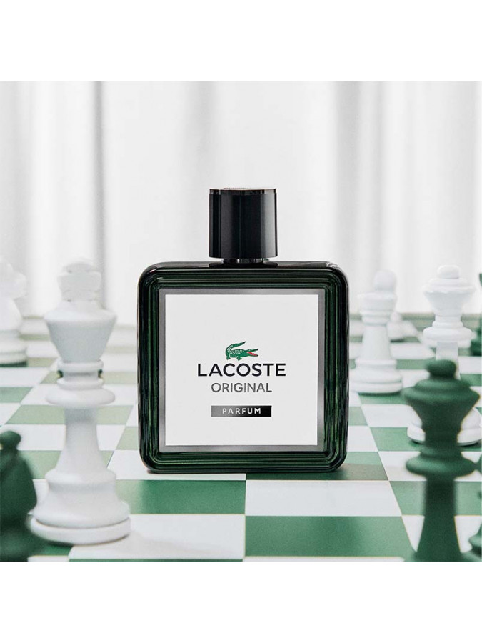 Lacoste Original Parfum: a more intense concentration where elegance meets vibrant intensity. The distinctive signature of lavender and tonka bean is enriched with new intense and sensual notes to reveal a spicy woody fougere fragrance.