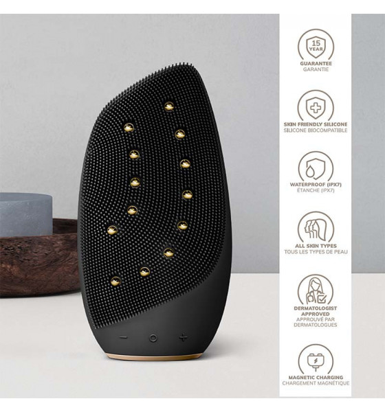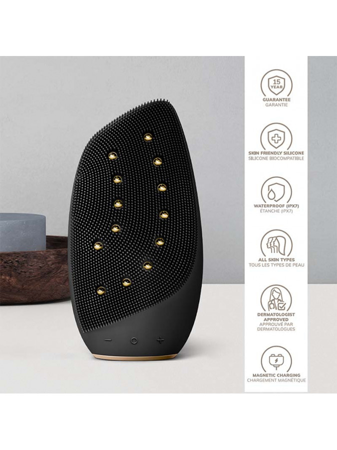 - Skin Scan & Personal Routine Guide powered by cutting-edge AI technology to ensure you get the most out of your device - 12 Thermo Deep Warming Pearls embedded with MicroCurrent Face-Lift Technology that work to eliminate the tell-tale signs of fatigue and aging from the face, neck and décolleté - Ultra-Gentle Contouring & Firming Spheres that trigger the skin's regenerative processes - SmartSonic Pulsation Technology that shakes loose dirt & residue - Ultra Hygienic Deep Cleansing Technology that ensures glowing, blemish-free skin - Youthful Glow Massage Technology - a 3-tiered miracle that lifts, firms and tones - Pore-Opening Deep Warming Technology that unclogs your skin and preps it for your routine - Eye-Nose Area Targeted Design for precise cleansing and massage in the hard-to-reach areas